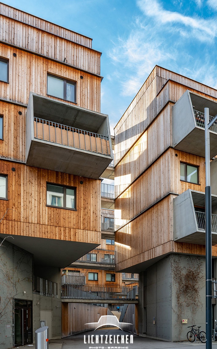 Referenzfotos für den ÖFHF (Österreichischer Fachverband für hinterlüftete Fassaden), im geförderten Mehrgeschosswohnbau, im Stadtgebiet von Wien